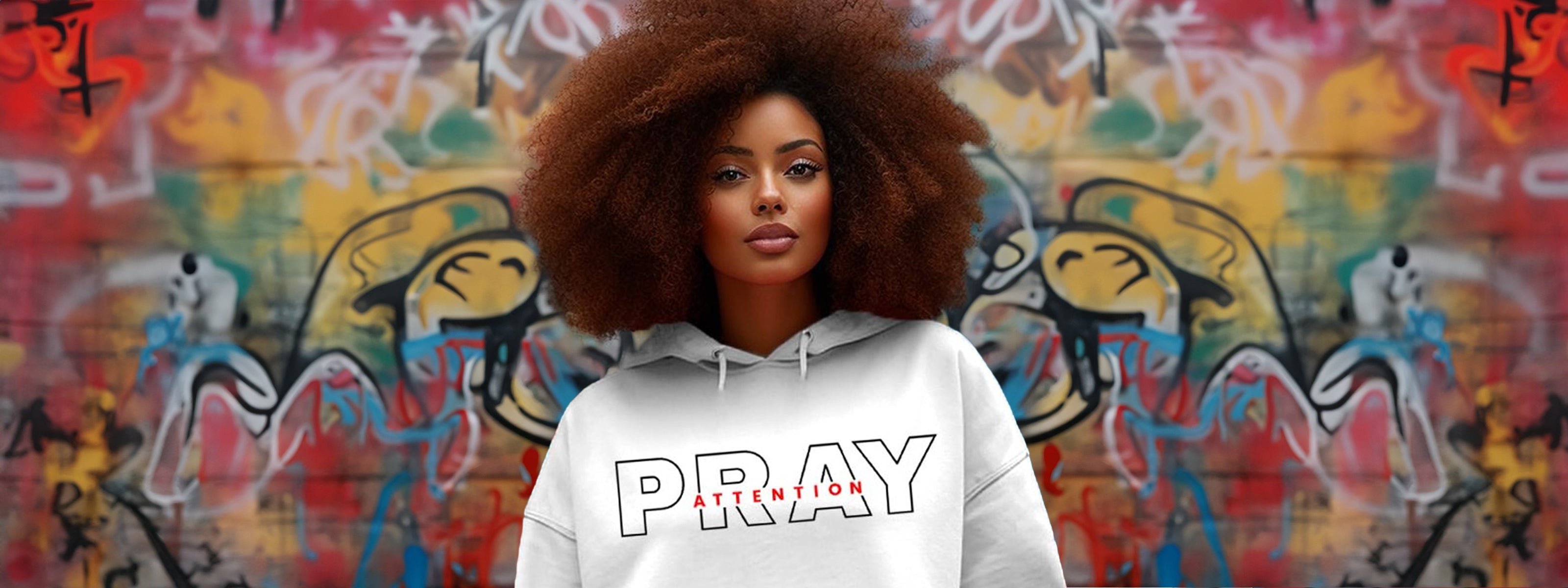 Available in classic black or pristine white, the versatile color options cater to various personal styles and preferences. The inclusive sizing, ranging from Small to 2X, ensures that individuals of all body types can embrace and showcase this meaningful piece. Whether you're seeking a fashion-forward expression of spirituality or simply appreciate a unique and comfortable hoodie, The Pray Attention Hoodie effortlessly combines style with a profound message, making it a standout addition to any wardrobe.